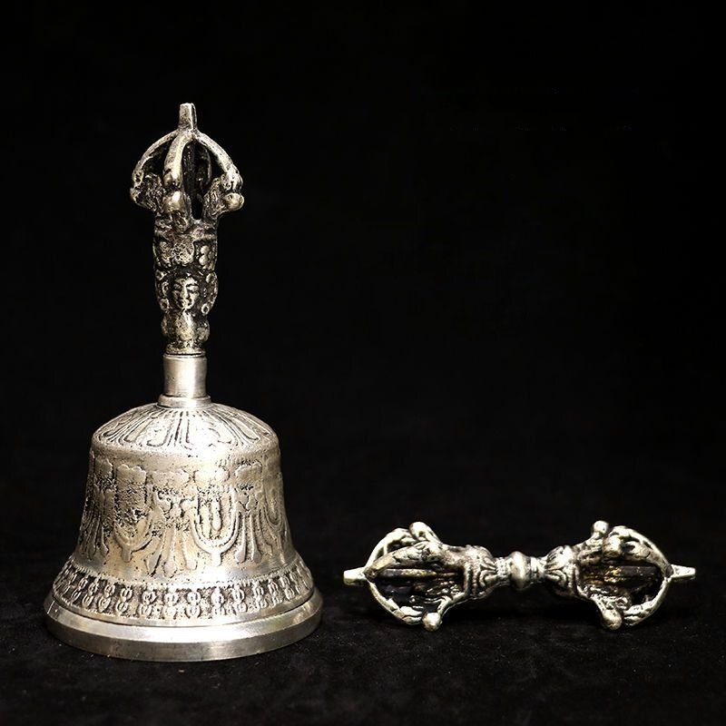 - 2点セット 唐密 東密 チベット 金剛杵 五鈷鈴 金剛鈴 持鈴 密教法具 チベット仏教 白銅製 寺院仏具 法器 法具 魔除け 厄除け 小 ZH1726