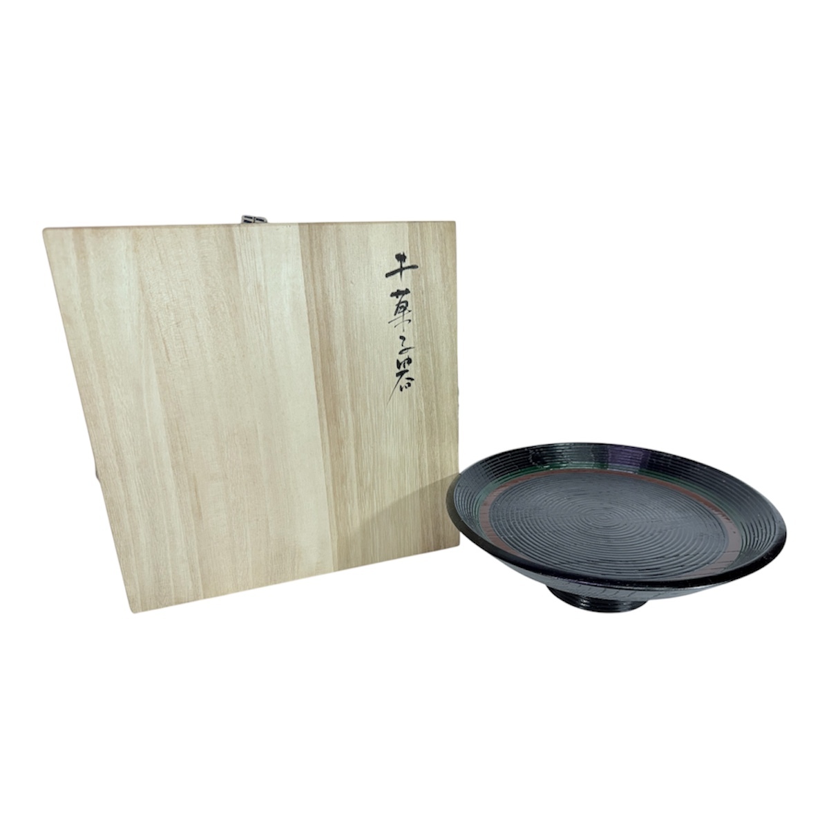 - 8Wj/1-6 木製漆器 華昭 作 独楽 菓子器 高坏 干菓子 茶道具 共箱