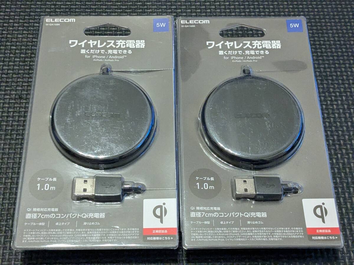 - ◎0710u0644 エレコム ワイヤレス充電器 Qi対応 5W ケーブル一体 1m コンパクト 卓上 ブラック W-QA16BK 2個セット