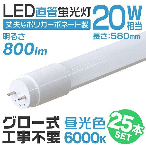 - 【25本セット】1年保証付き 直管 LED蛍光灯 20W形 58cm 高輝度SMD グロー式 工事不要 電気 照明 天井照明 会社 事務所 店舗 オフィス 新品