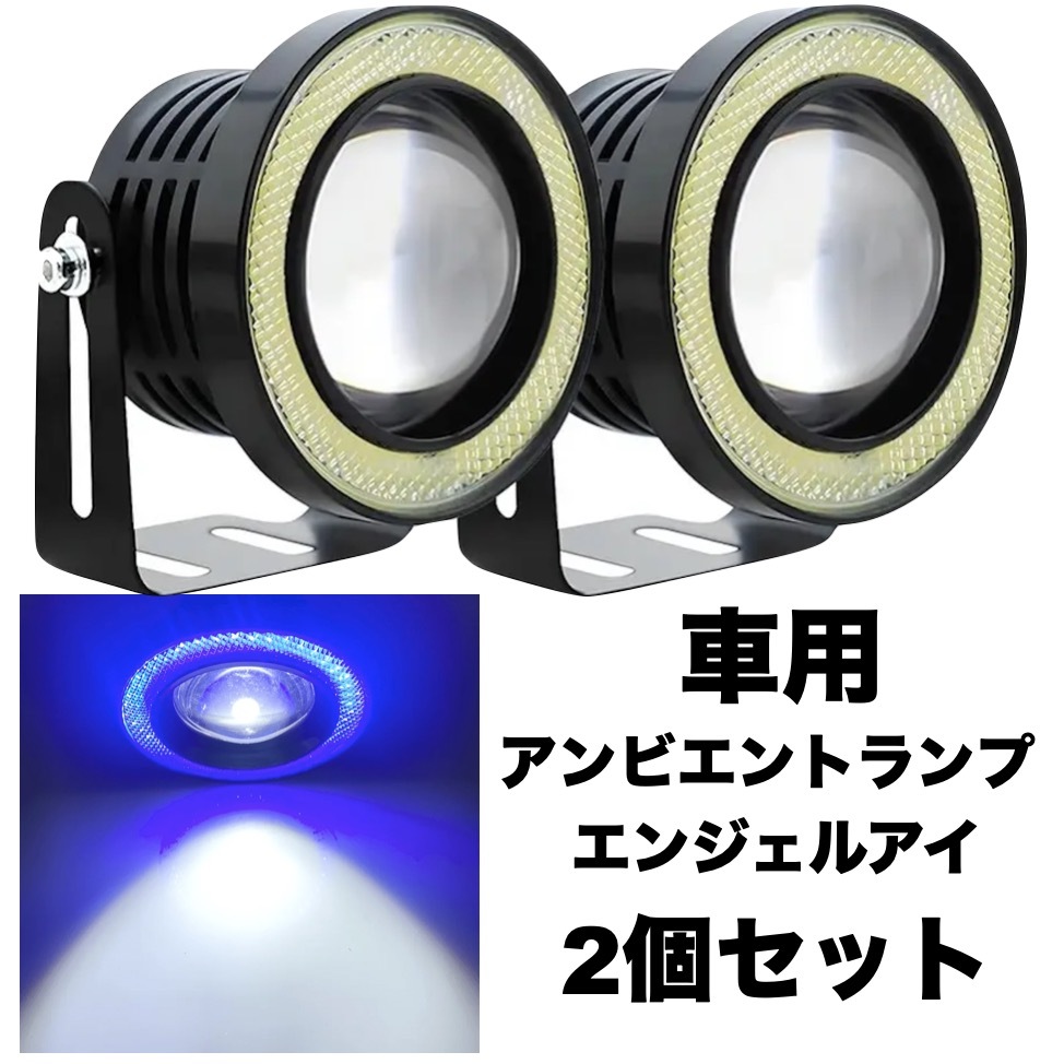 - 車用 ヘッドライト LED 補助ライト8.9cm アンビエントランプ エンジェルアイ ブルー 青 12V カーライト 配線付き スポットライト t8902
