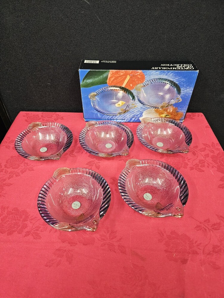 > 未使用 SOGA GLASS 曽我ガラス 魚形 ガラス皿 5枚セット 魚形ガラス皿 サイズ約17cm×14.5cm高さ4cm ekt5-22