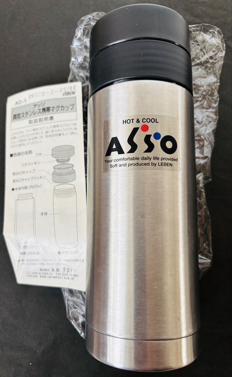 - ASSO アッソ ステンレスボトル 真空ステンレス携帯マグカップAO-1 ステンレス 保冷 保温