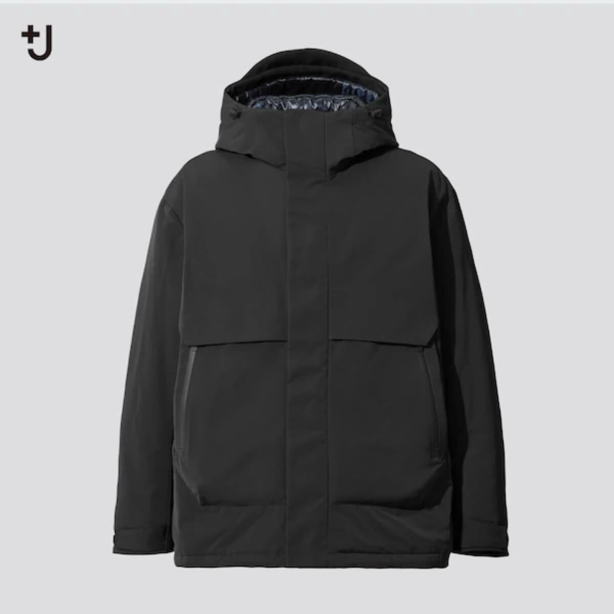 > 人気《UNIQLO +J》ハイブリッドダウンオーバーサイズパーカ(M)黒 ユニクロ プラスジェイ ジルサンダー ダウンジャケット フード