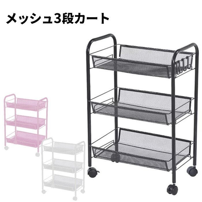 - 訳ありB級品◆キッチンワゴン キャスター付き 3段 メッシュ ラック 小物収納 キッチンカート マルチカート ###訳小坂カートSRC-3C###