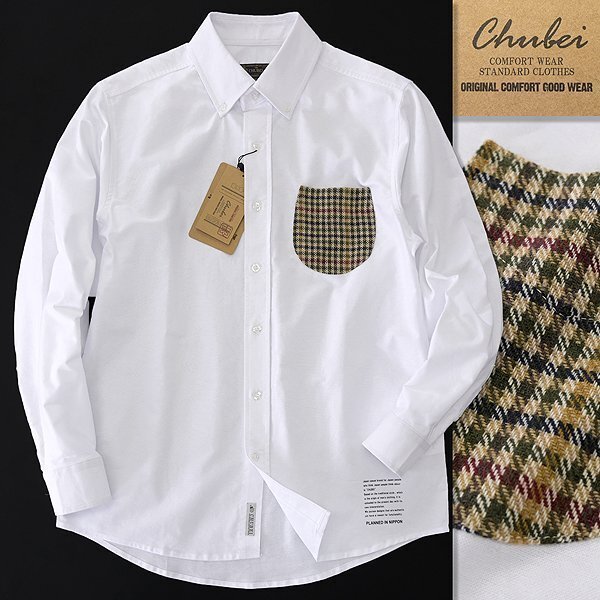 - 新品 チュウベイ 別地 ポケット オックス ボタンダウンシャツ M 白② 【CH1443206_06-2_M】 秋冬 CHUBEI コットン ツイード チェック