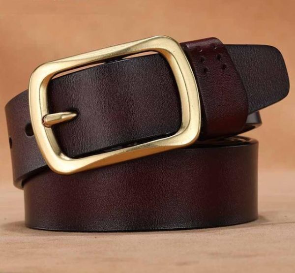 - ベルト メンズ レディース カジュアル ビジネス スーツ ゴールドバックル シンプル レザー 通勤 通学 おしゃれ ブラウン