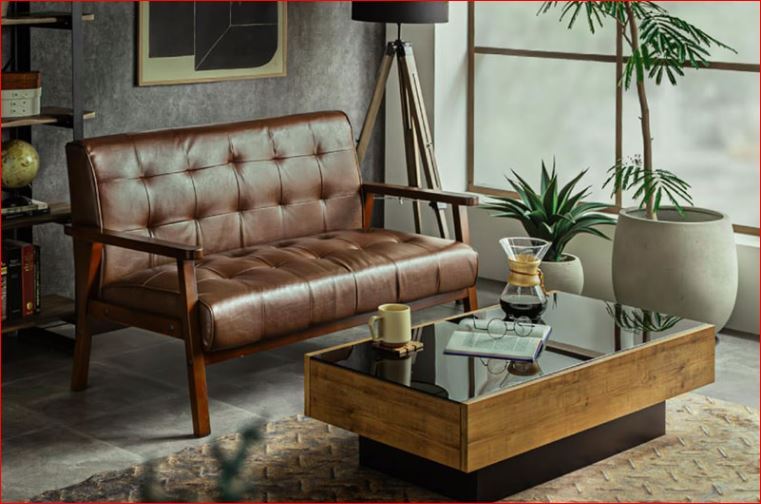 - ソファー 2P 木肘 肘付椅子 レトロ 剥離しやすいPUレザー、ソフトレザー不使用 バイキャスト Sバネ入り LBR