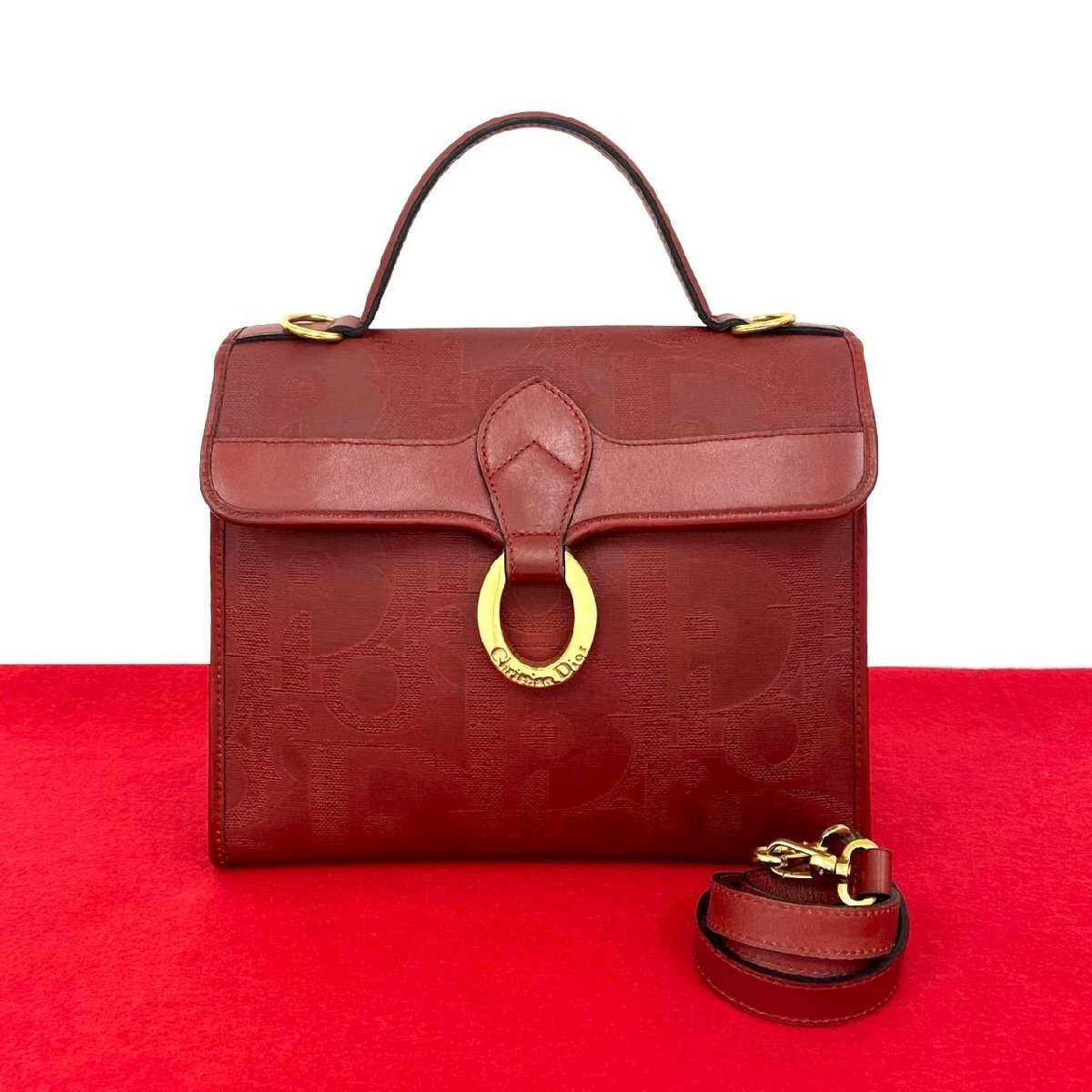 > 極 美品 Christian Dior クリスチャンディオール ロゴ 金具 トロッター 柄 レザー 2way ハンドバッグ ショルダーバッグ レッド 88415