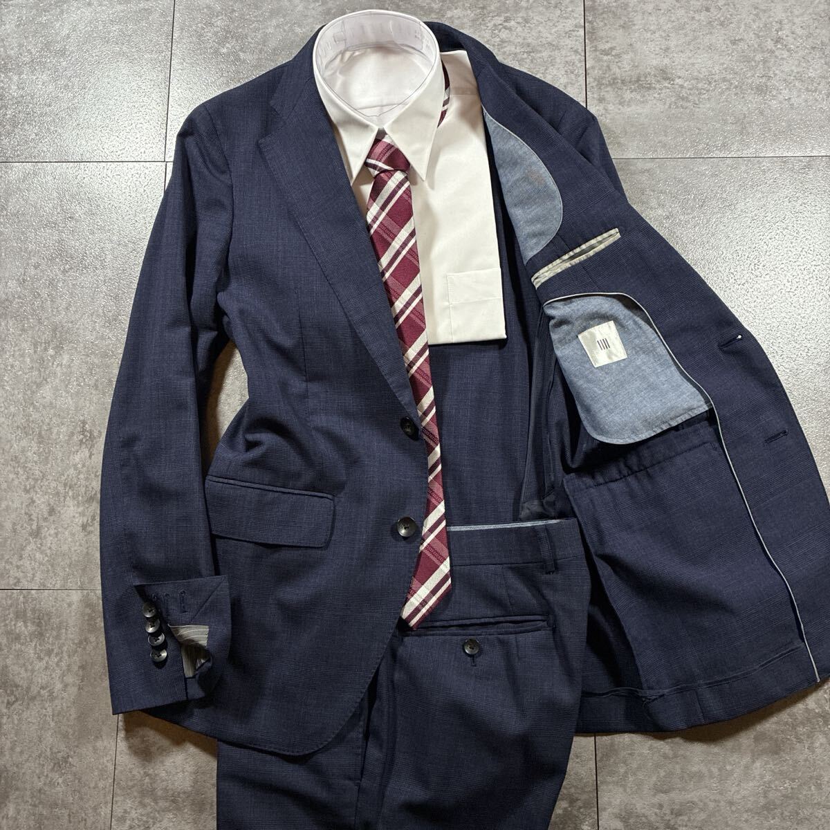 > 【定番・M相当】SUIT SELECT スーツ セレクト セットアップ ネイビー ジャケット メンズ ビジネス オールシーズン フォーマル 2B 秋春