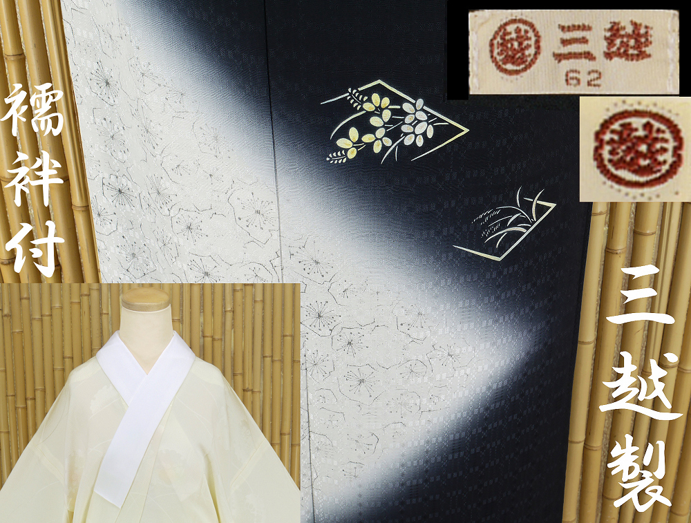 > 【京かんざし】572「三越扱い」訪問着 長襦袢セット!黒地161 cm裄丈65 cm★即決送料無料