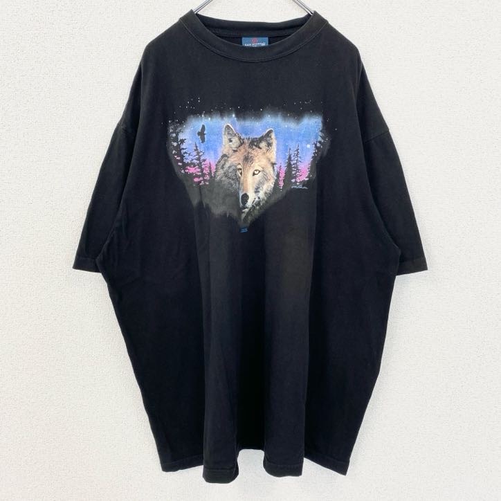 > 古着 used SAN MARINO 半袖アニマルプリントTシャツ オオカミ ウルフ 黒 ビッグシルエット 5XLサイズ
