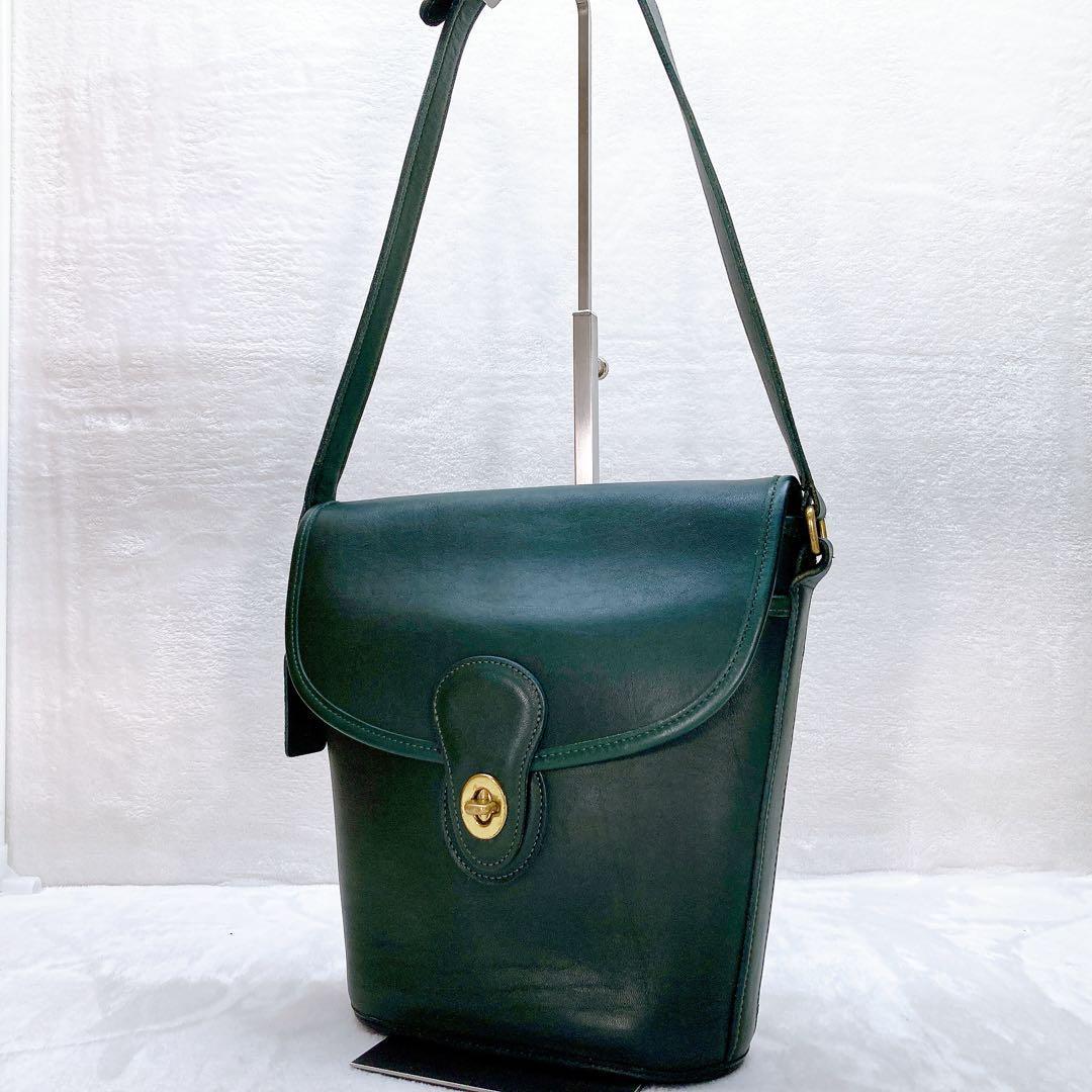 > 超美品COACH コーチ バケット ショルダーバッグ ターンロック グリーン