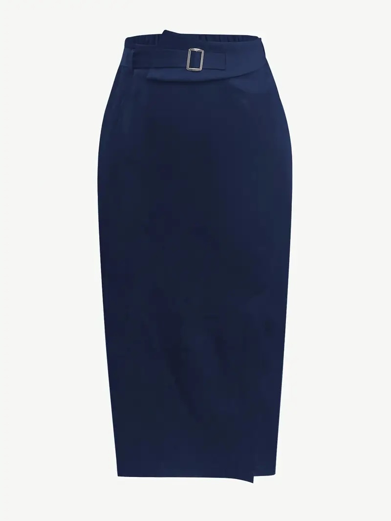 - タイトミディスカート アシンメトリー ベルト付き 紺色 3Lサイズ(2467)