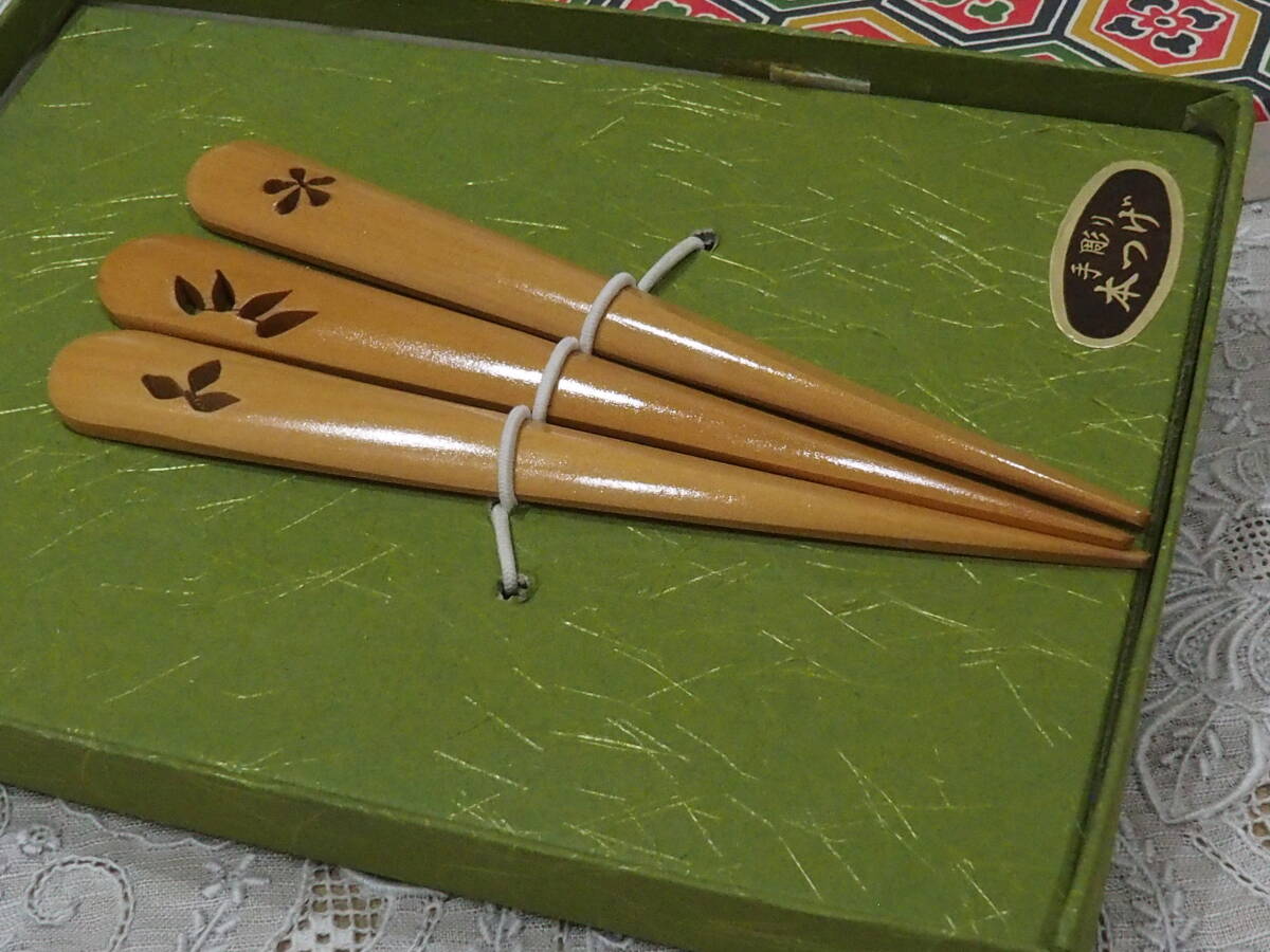 - 手彫り 本つげ 菓子切り 未使用保管品 楊枝