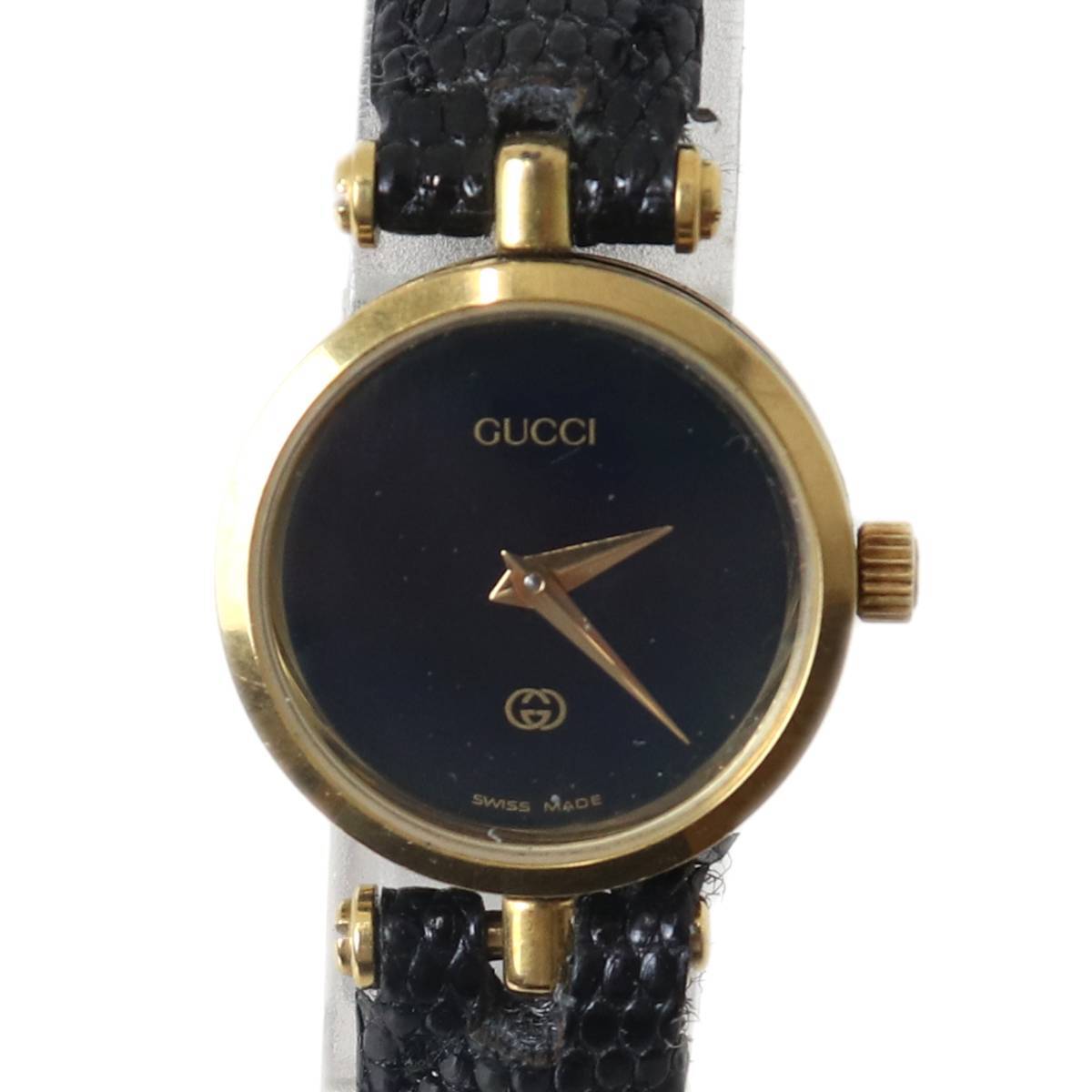 - GUCCI グッチ レディースクオーツ 腕時計 社外ベルト・尾錠 シェリー ブラック×ゴールド 2000L 説明書 腕回り15~18.5(cm) NT Bランク