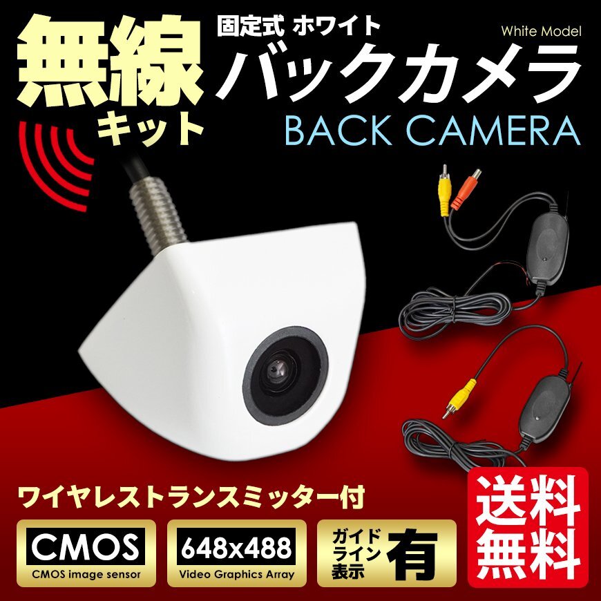 > バックカメラ 白 + ワイヤレスセット 高画質 リアカメラ 広角レンズ 汎用 防塵 防水 国内 検査後出荷 ネコポス* 送料無料