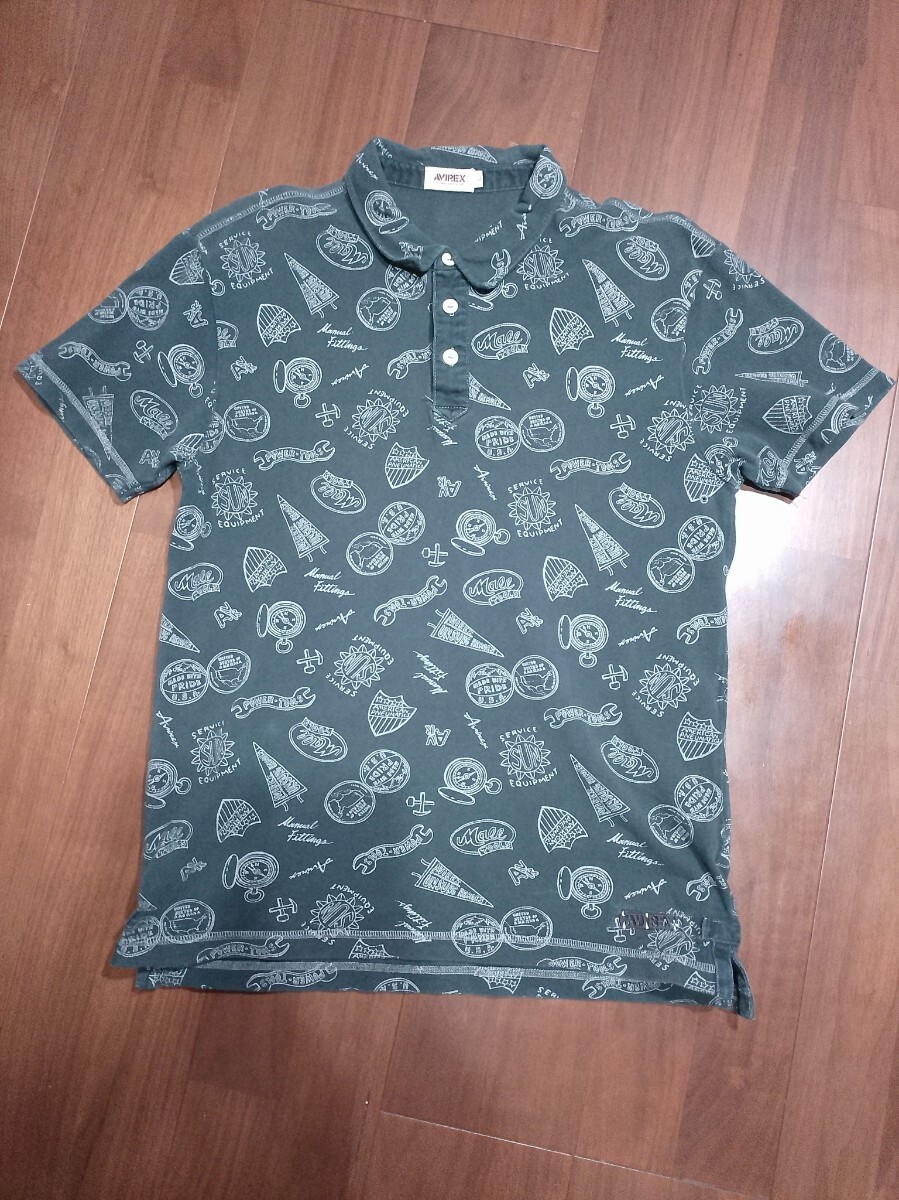 - AVIREX アヴィレックス 半袖ポロシャツ サイズL メンズ 黒 総柄
