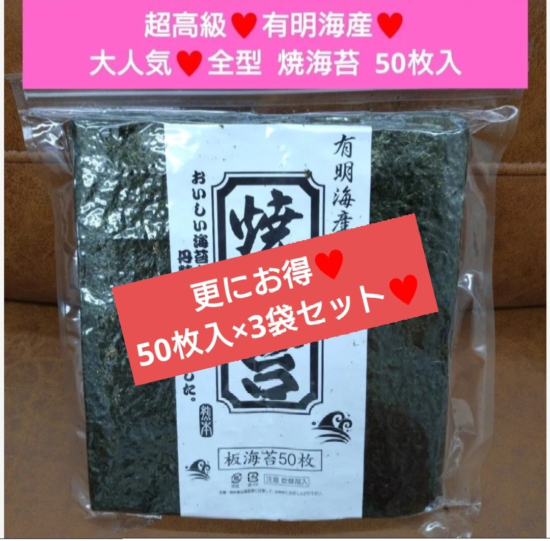 - 有明産 焼き海苔 50枚×3袋セット 全型50枚 海苔 のり おにぎり 乾物