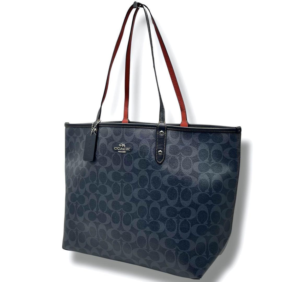 > 極美品 COACH コーチ トートバッグ リバーシブル PVC レザー ネイビー