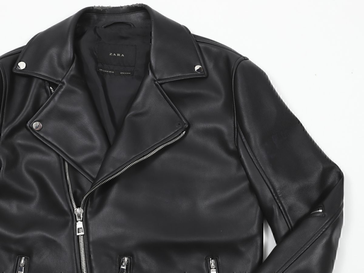 > ★中古品★ZARAMAN ザラマン★フェイクレザーライダースジャケット★M【1966/300】ブラック黒【本物保証】難あり★ボタン破損★生地痛み