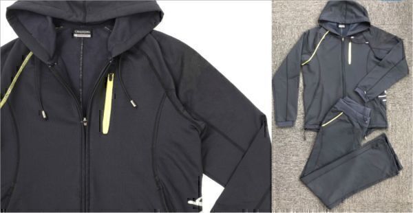 > ★中古★Kappa カッパ★ITALIA胸ポケットジップアップパーカーM&ジャージストレッチトラックパンツL【KMMB5C02】ブラック黒【本物保証】