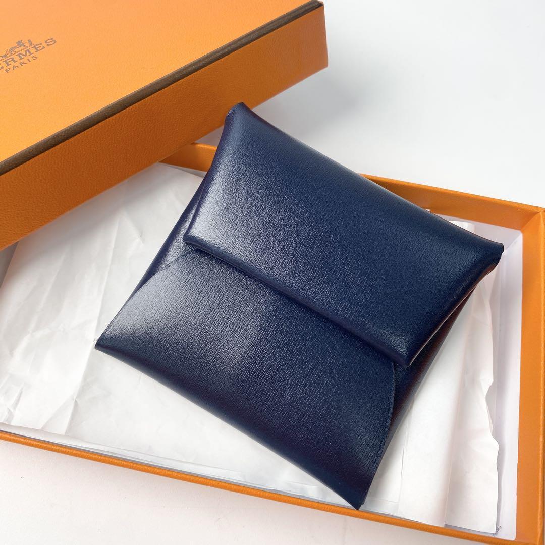 - 美品 HERMES バスティア ボックスカーフ コインケース W刻印 ネイビー