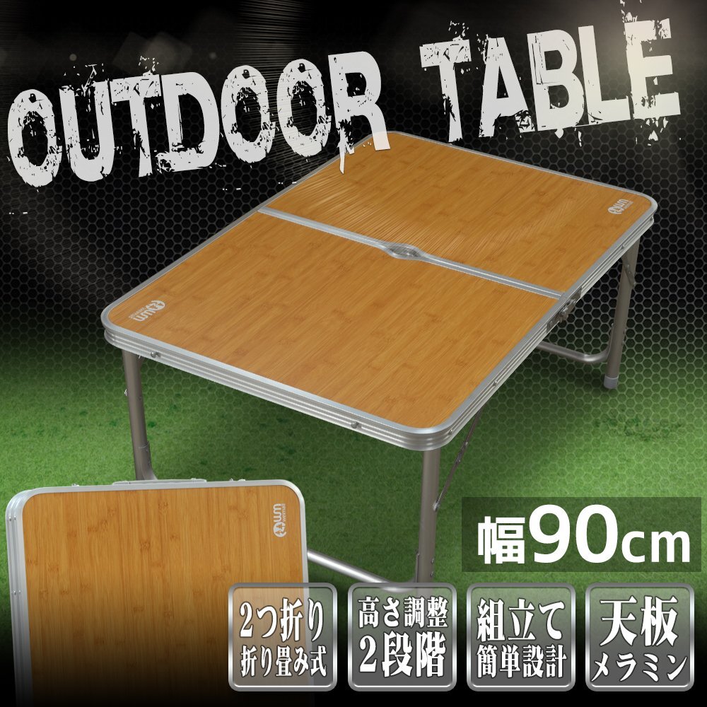 - レジャーテーブル 折りたたみ アウトドア ピクニック ベージュ 竹 バンブー[幅 90cm] [アルミテーブル キャンプ バーベキュー BBQ]