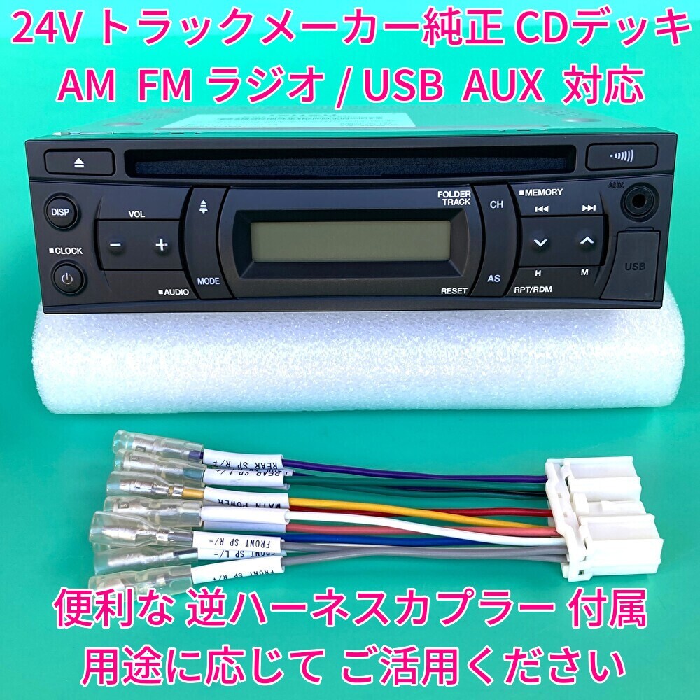 - ★★ 24V いすゞ純正 ラジオ CDデッキ USB AUX オーディオ チューナー 日野三菱ふそうUD 古いトラック 流用 移設 逆ハーネス付 新車外しn