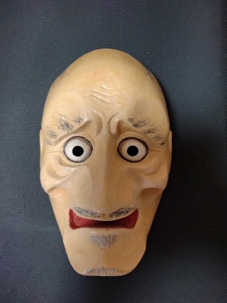 - 狂言面 爺 木彫 有田智夫作 (能面、神楽面、装束、)