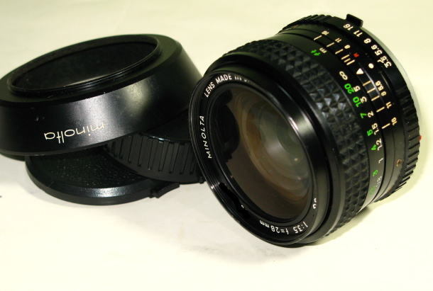 - ミノルタ MINOLTA MC W. ROKKOR-SG 28mm f3.5 キャップ類 / フード付属 オールドレンズ 中古