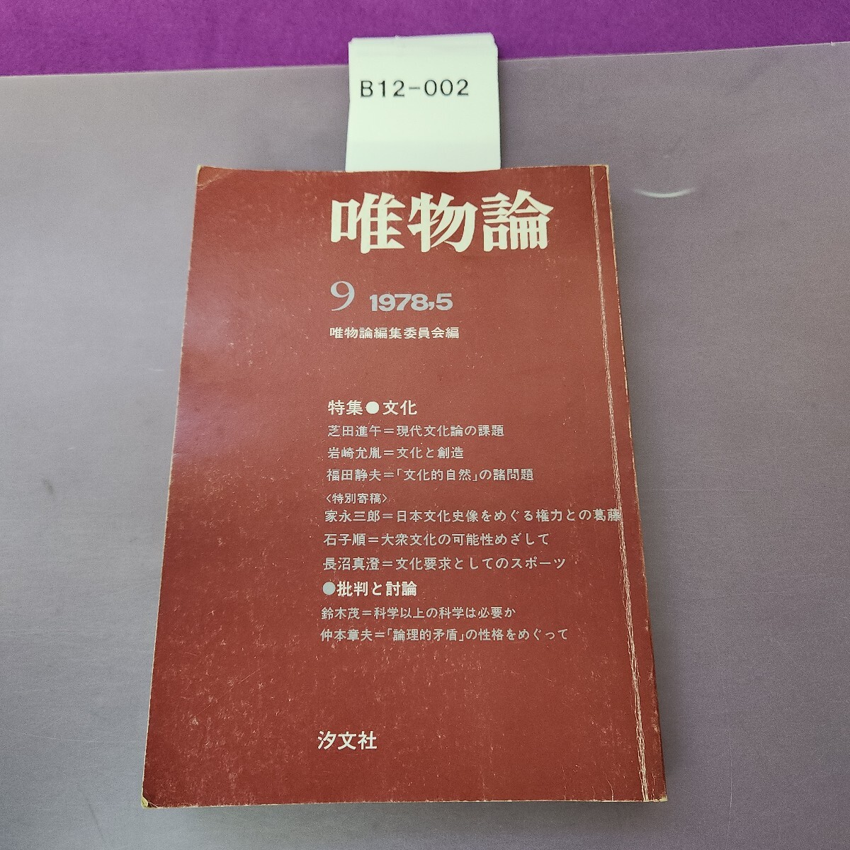 - B12-002 唯物論 9 特集 文化 1978,5 汐文社