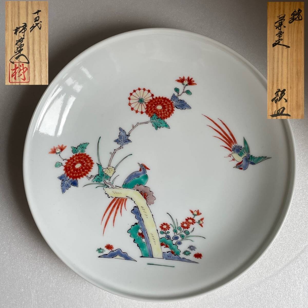 - 【和美】十四代 柿右衛門 菊鳥文 額皿 共箱 本物保証 70