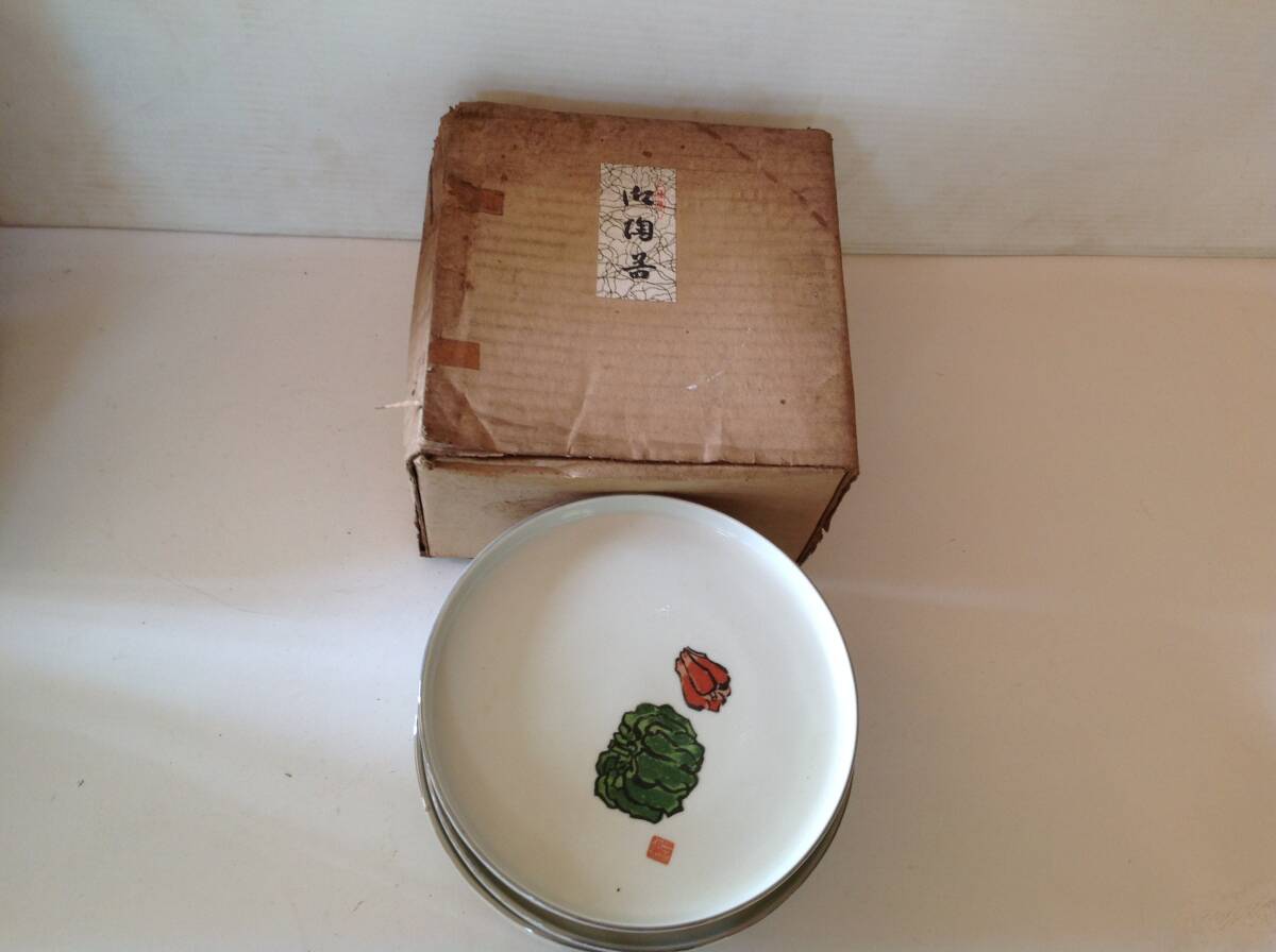 - *武者小路実篤 小鉢 野菜の絵 藤波 平皿 5客 中古品 箱付*