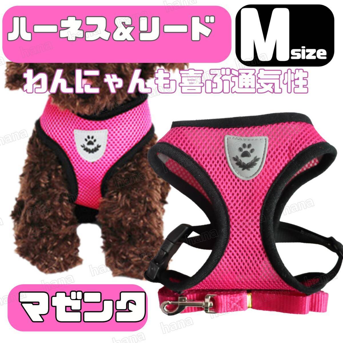 - ハーネス リード メッシュ ペット 犬用 猫用 散歩 抜けない 脱げない 首輪 胴輪 超小型犬用 小型犬用 Mサイズ マゼンタ