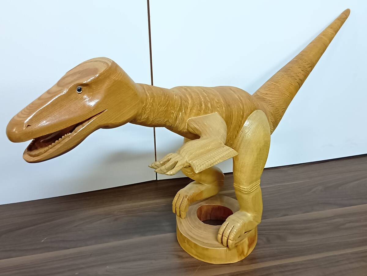 - 【OK彦】大きな木彫りの置物 恐竜 オブジェ インテリア 全長100㎝ 高さ56㎝ 1円スタート