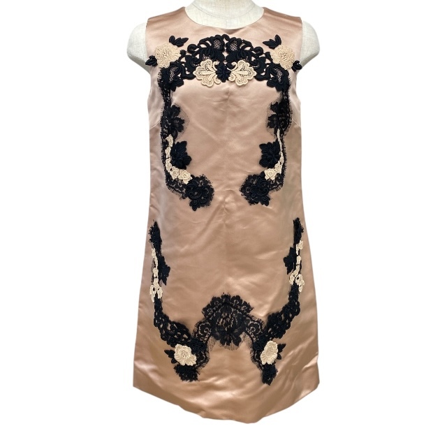 > 未使用 ドルチェ&ガッバーナ ドルガバ DG D&G F6KA9T FU1CK ワンピース サテン フラワー シルク ピンクベージュ DOLCE&GABBANA [サイズ40]