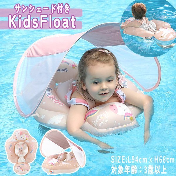 - サンシェード付き ユニコーン フロート シートベルト エアバッグ 水慣れ ベビー ボート 浮き輪 浮輪 うきわ 屋根 日よけ 日陰 UV 水遊び