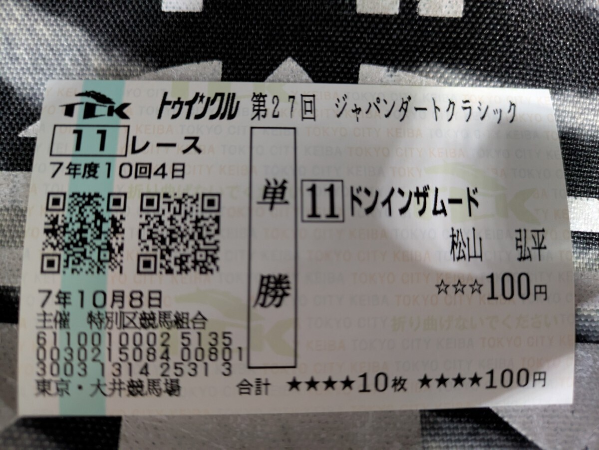 - 即決!ジャパンダートクラシック ドンインザムード 現地購入単勝馬券