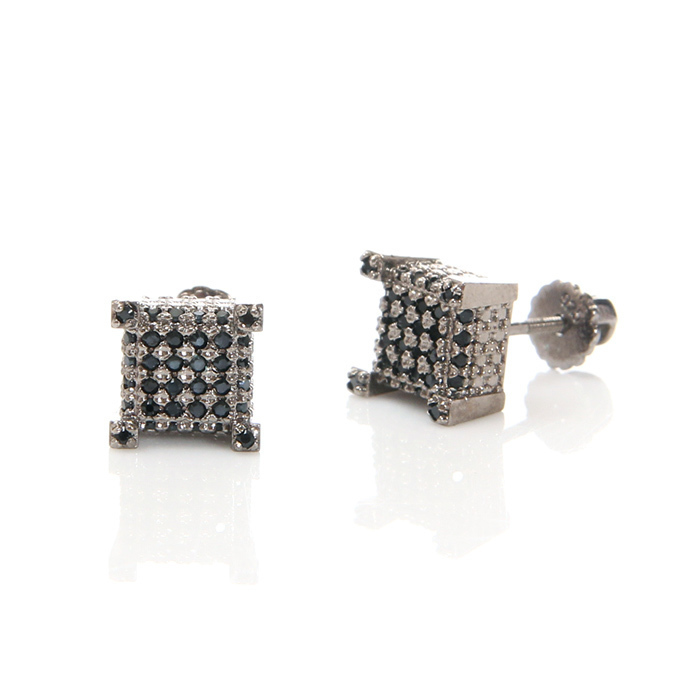 > 【新品】ピアス スモークシルバー メンズ レディース 男女兼用 ブラック ジルコニア スクリューバック ピアス おしゃれ 両耳用 (2個売り)