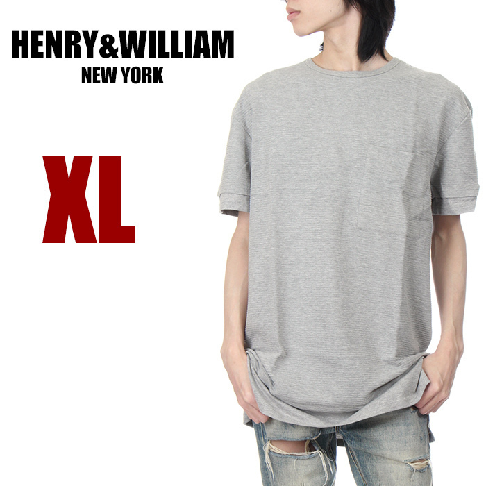 > 【新品】【USAモデル】HENRY&WILLIAM ロング丈 半袖 ポケット Tシャツ XL グレー メンズ ポケT テレコ編み 無地 ブランド 大きいサイズ