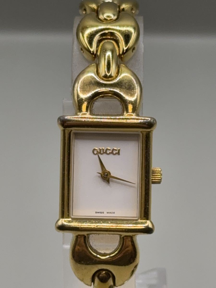 - D2 稼働 電池交換済 グッチ 1800L QZ ホワイト文字盤 レディース腕時計 チェンジベルト