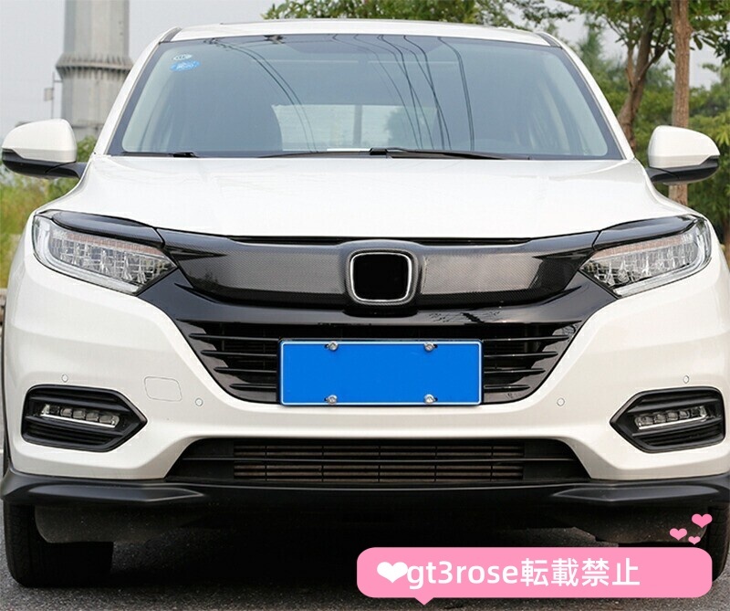 - 3P ヴェゼルRU系 後期型 カスタム パーツ アクセサリー 両面テープ取付 グリルガーニッシュカーボン調、レッド、ブラック 3仕様選択可能