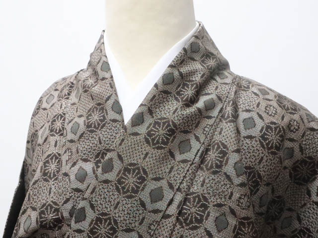 - 《京都一輝堂》【着物】大島紬 亀甲づくし文 身丈約166cm 裄丈約65cm 25z02-891