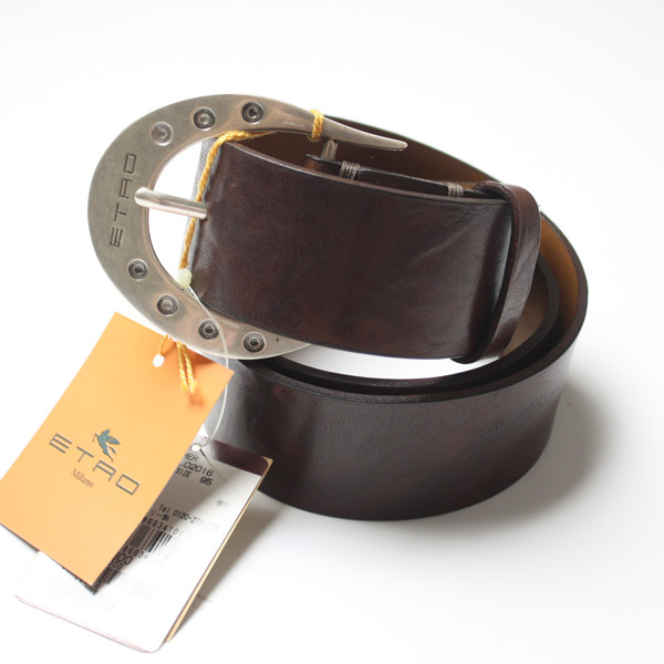 > 新品タグ付き 定価5.6万 自宅保管 エトロ ETRO ベルト レザー 馬蹄バックル イタリア製 本革 25-1009fu03【4点同梱で送料無料】