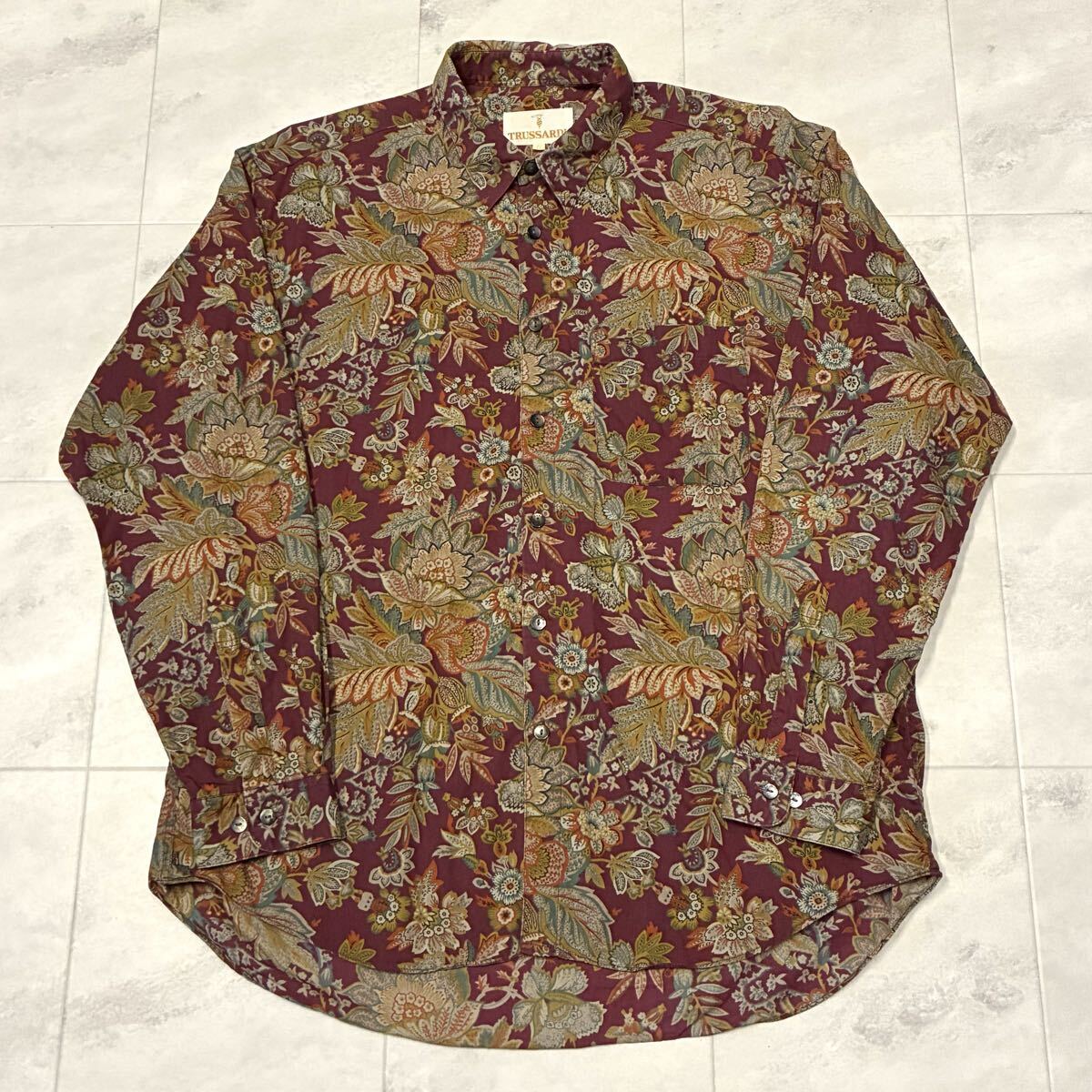 - TRUSSARDI トラサルディ 総柄 柄シャツ 花柄 ビンテージ 長袖シャツ Fabrics by ITALY size5