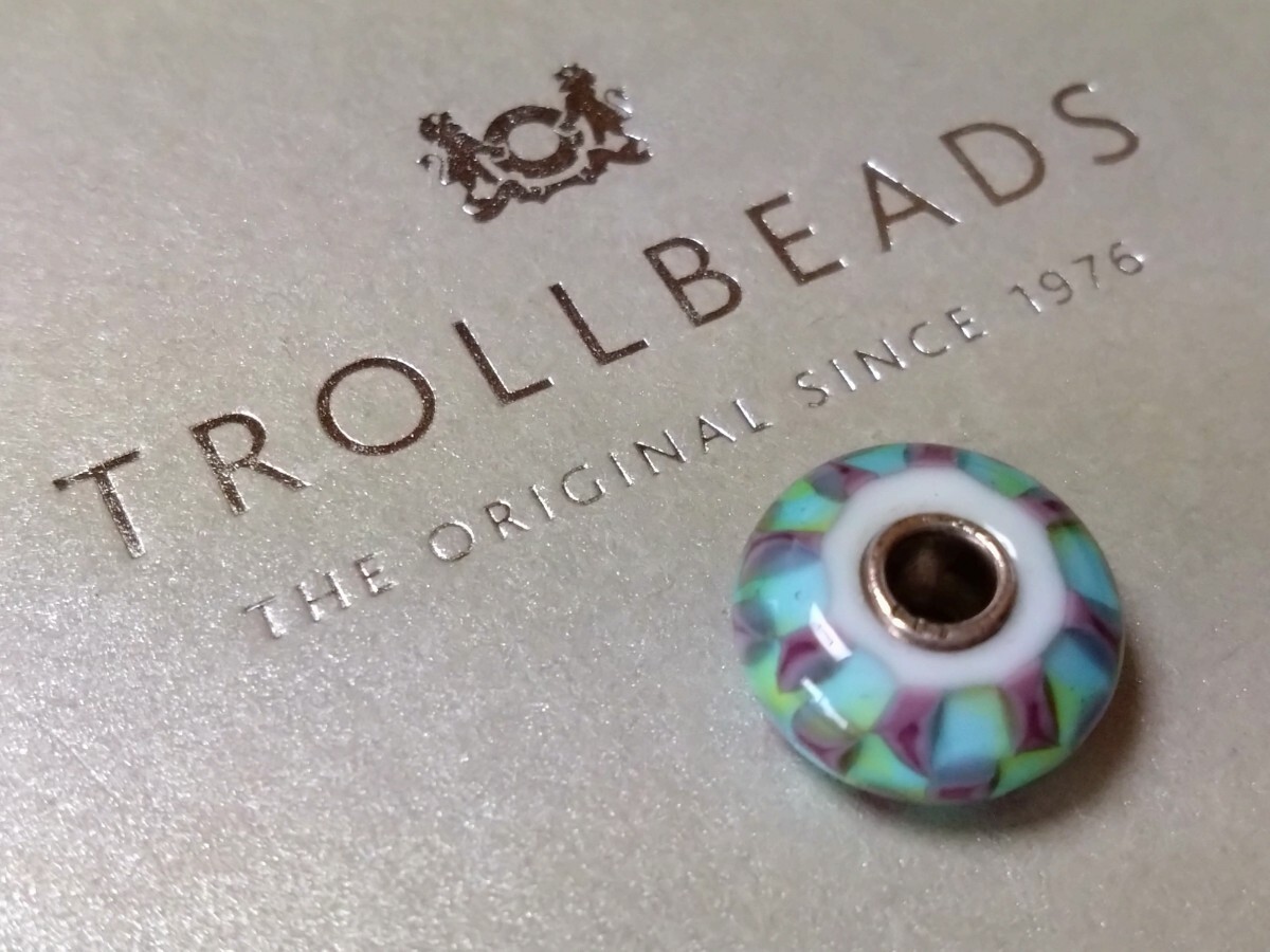 > 【Trollbeads】トロールビーズ 本物・美品 チェス イエロー 水色系 ガラスビーズ オールドリタイアード 廃番 稀少