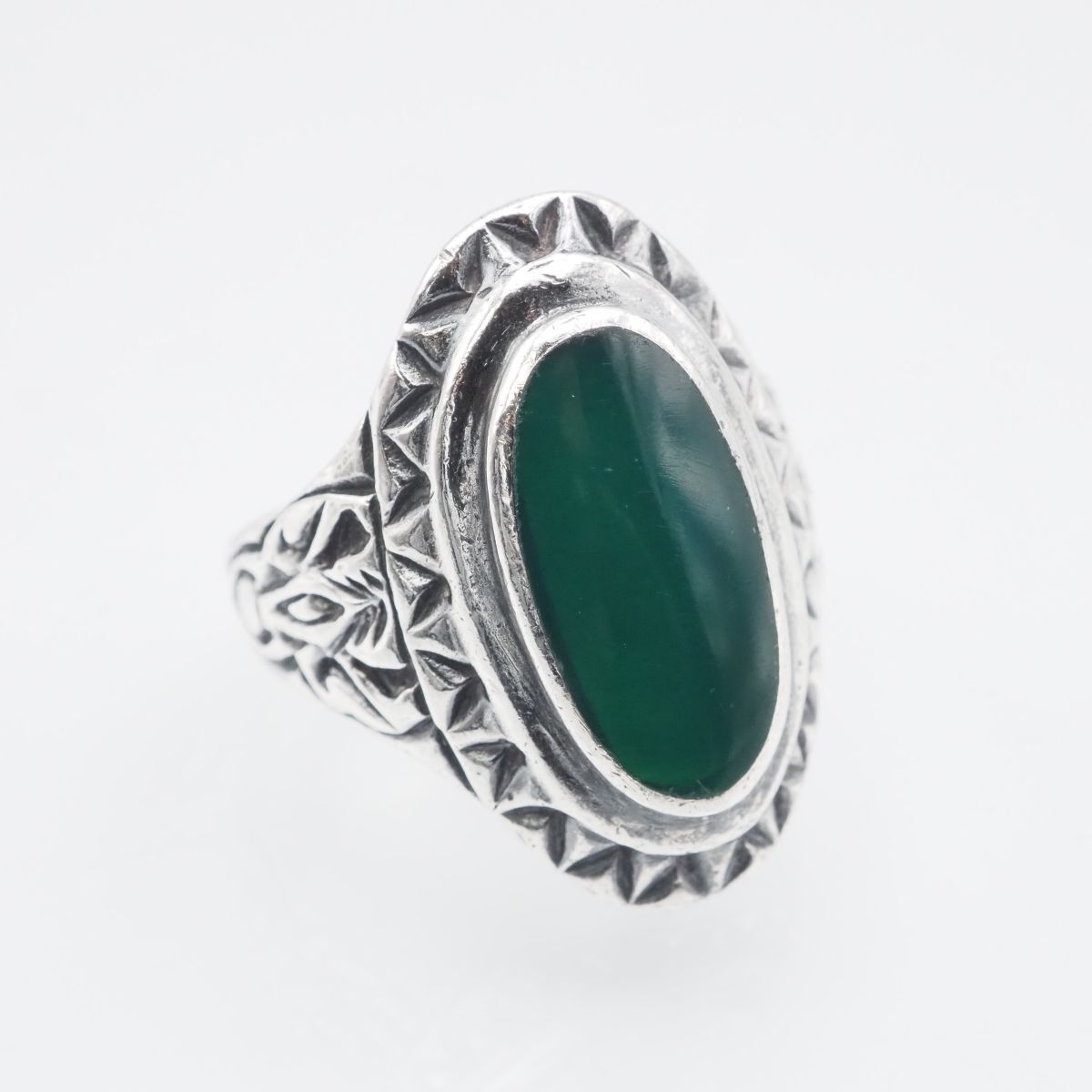- G076 グリーンアゲート風 925刻印 リング インレイ 彫刻 デザイン シルバー 指輪 ヴィンテージ 12号