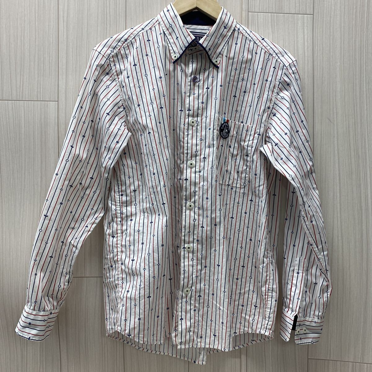 - D34 3P-251003-611 CAPRI BLUE カプリブルー 長袖シャツ ストライプ柄 シャツ 長袖 ワッペン マルチカラー メンズ サイズ48