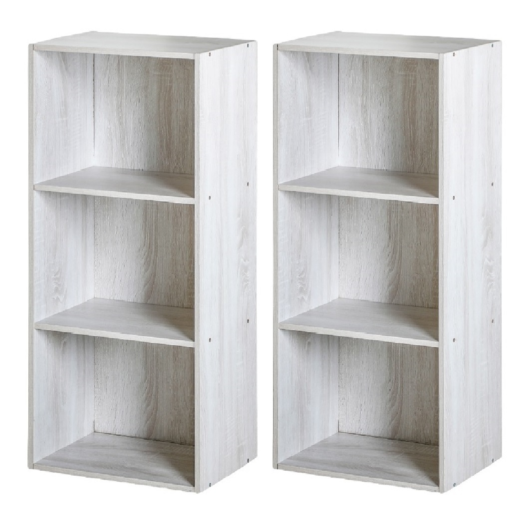 - カラーボックス 3段 2個セット (アッシュホワイト) 3段ボックス 収納家具 収納棚 本棚 白系 3段 ash白 2